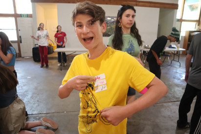 We began with breakfast in Haifa. The chadar (dining hall) was split into various 'apartments' to simulate living in the city. Chanichimot (campers) enjoyed Israeli classics like shakshuka, spanakopita, and fruits. Then, after our regular avodah (work) block (we still need to keep camp clean, even on special days!) we realized we needed a minute to pack for our Israeli adventure. We visited various units in our apartment building and said hi to our neighbors, picking up what we needed along the way. Among our neighbors were folks from different cultures: Russians, Ethiopians, Brazilians, Palestinians, Americans and Yemenites. Each neighbor had a different accompanying game to play.